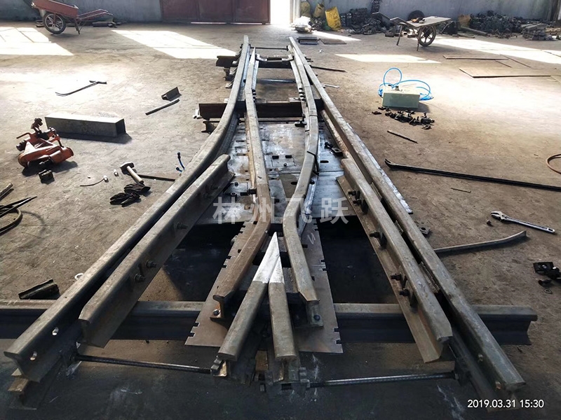 固定型轍叉一般為直線型,也有導曲線部分進入轍叉的形式。這樣轍叉號數不變,可加大導曲線半徑。既有線改造大量采用可動心軌轍叉,主要用于速度較高的區段。此外,也有與固定型轍叉跟距相同的可動心軌轍叉,固定型轍叉的護軌平面多為折線型。